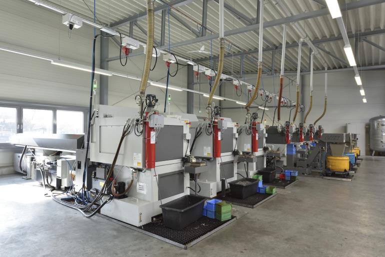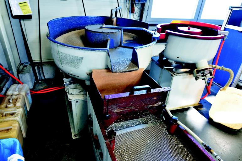 Zur Umsetzung diverser Kundenforderungen stehen in unserem Haus Nachbearbeitungsmaschinen zum Trovalisieren, Rollieren, Gleitschleifen, Kugelpolieren und Polieren in Maisschrot bereit.